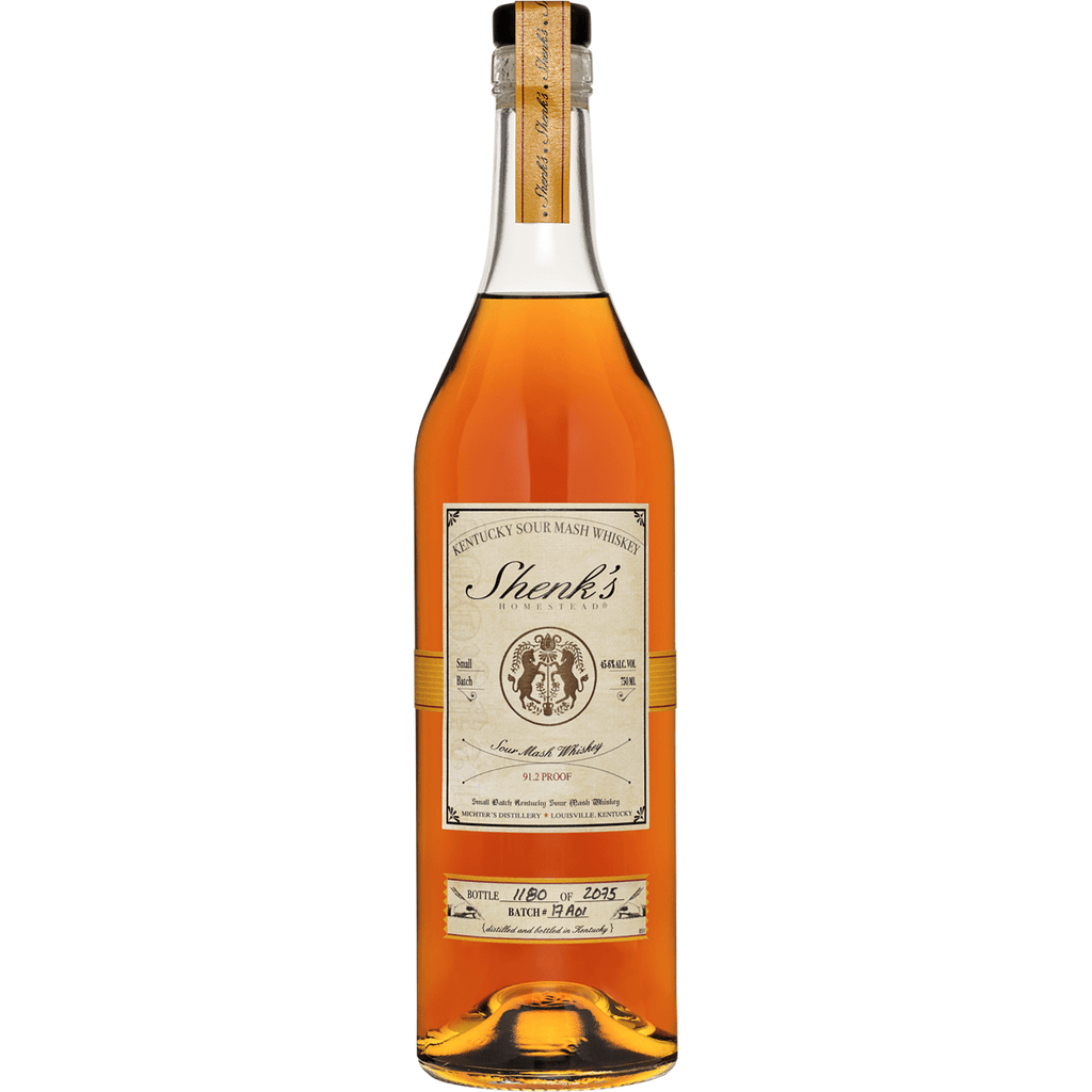 Shenk’s Homestead Distillery Sour Mash Whiskey honors the legacy of historic American whiskey figure John Shenk, who in 1753 founded a distillery that was to become known as Michter’s in the 20th Century. It is made in Kentucky according to the traditional Sour Mash process whereby a portion of the previously distilled whiskey mash (referred to as “setback”) is added into the next batch. This full-bodied small batch whiskey is 91.2 proof.